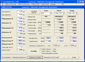 The software allows the tool design of single and even multi pre-stressing systems for die or punch systems. It allows considering materials, hardening, interference etc. or allows optimisation criteria such as max. possible tool load as well. All necessary data about materials and heat treatments is contained in the data base.